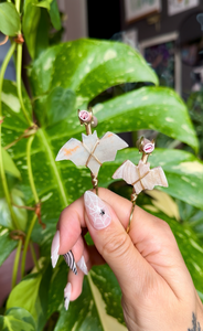 *one of one* chalcedony bat with raw opal & jade leaf cascading below • mirror / window accessory